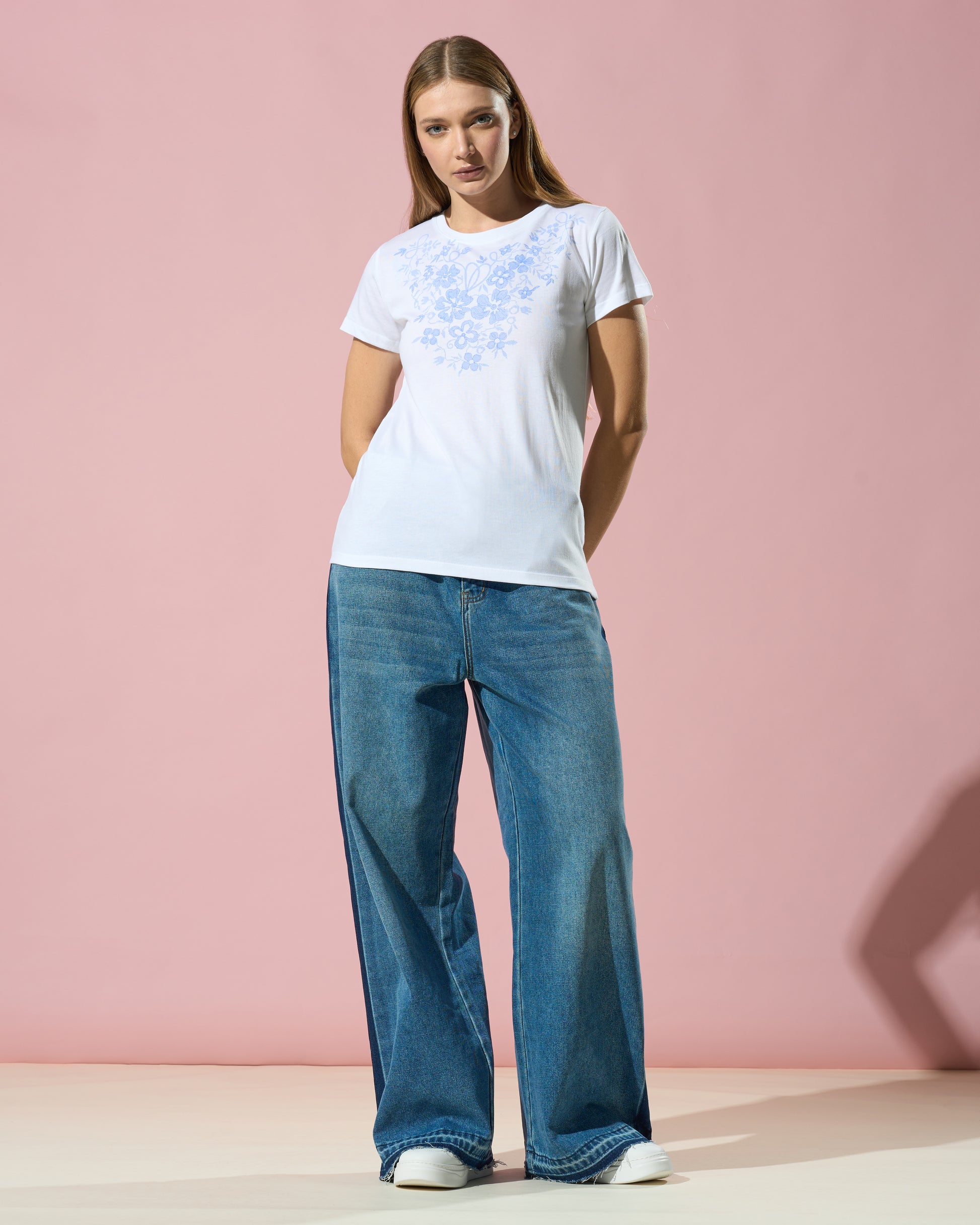This Pierre Cardin T-shirt captures the brand’s signature ease and refinement. Crafted from a soft cotton–modal blend, it’s enhanced with artful floral details that enliven the silhouette.