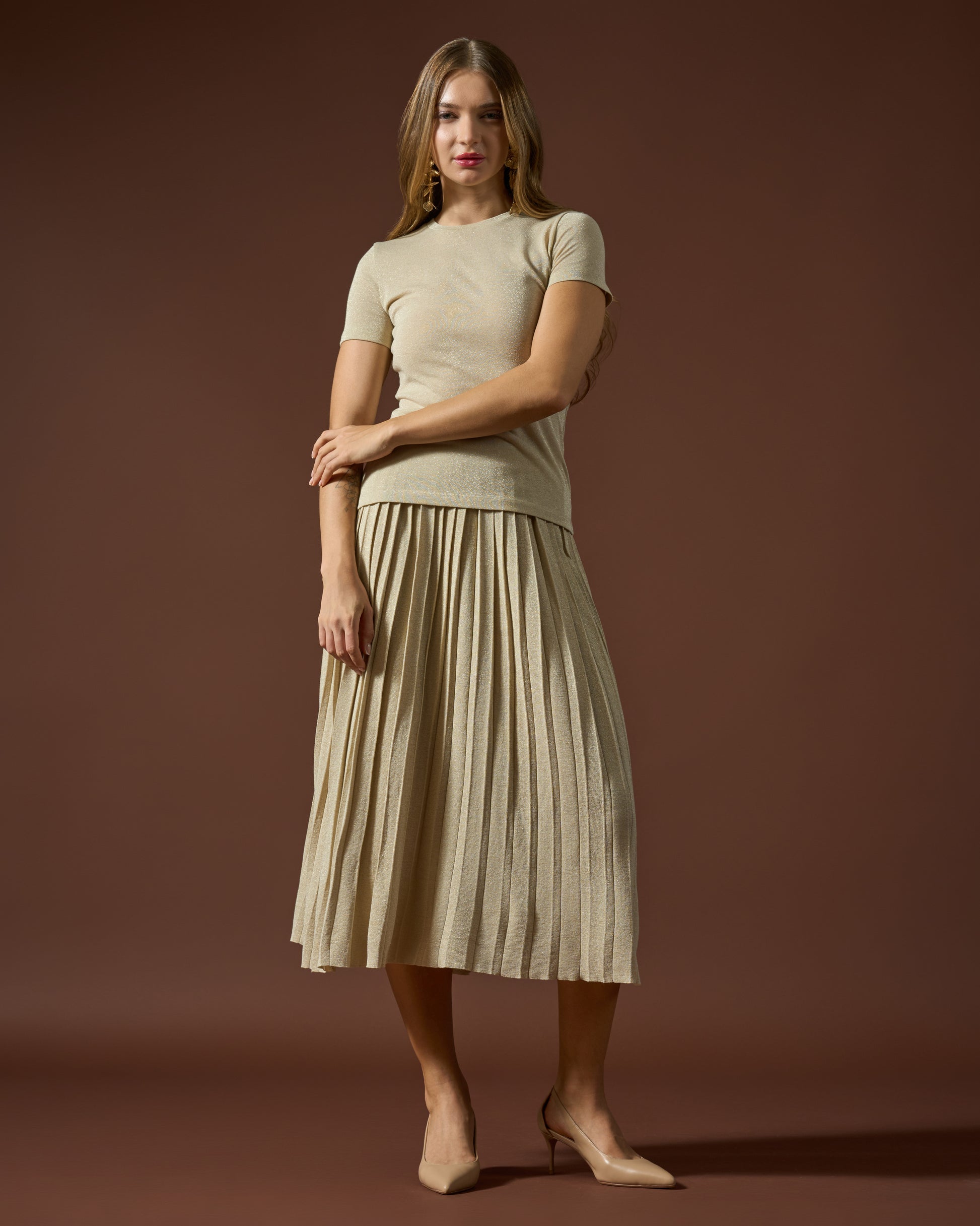This tee offers the perfect balance of comfort and understated glamour. Its subtle golden sheen catches the light beautifully, making it your go-to piece.