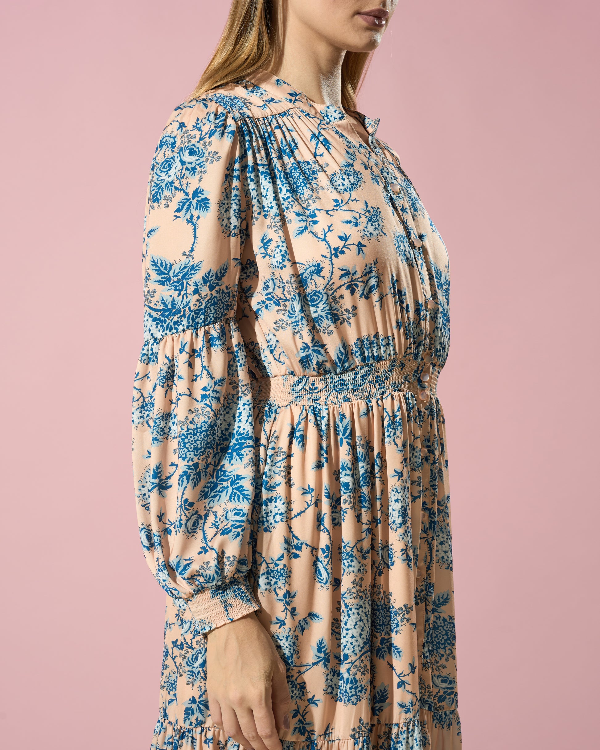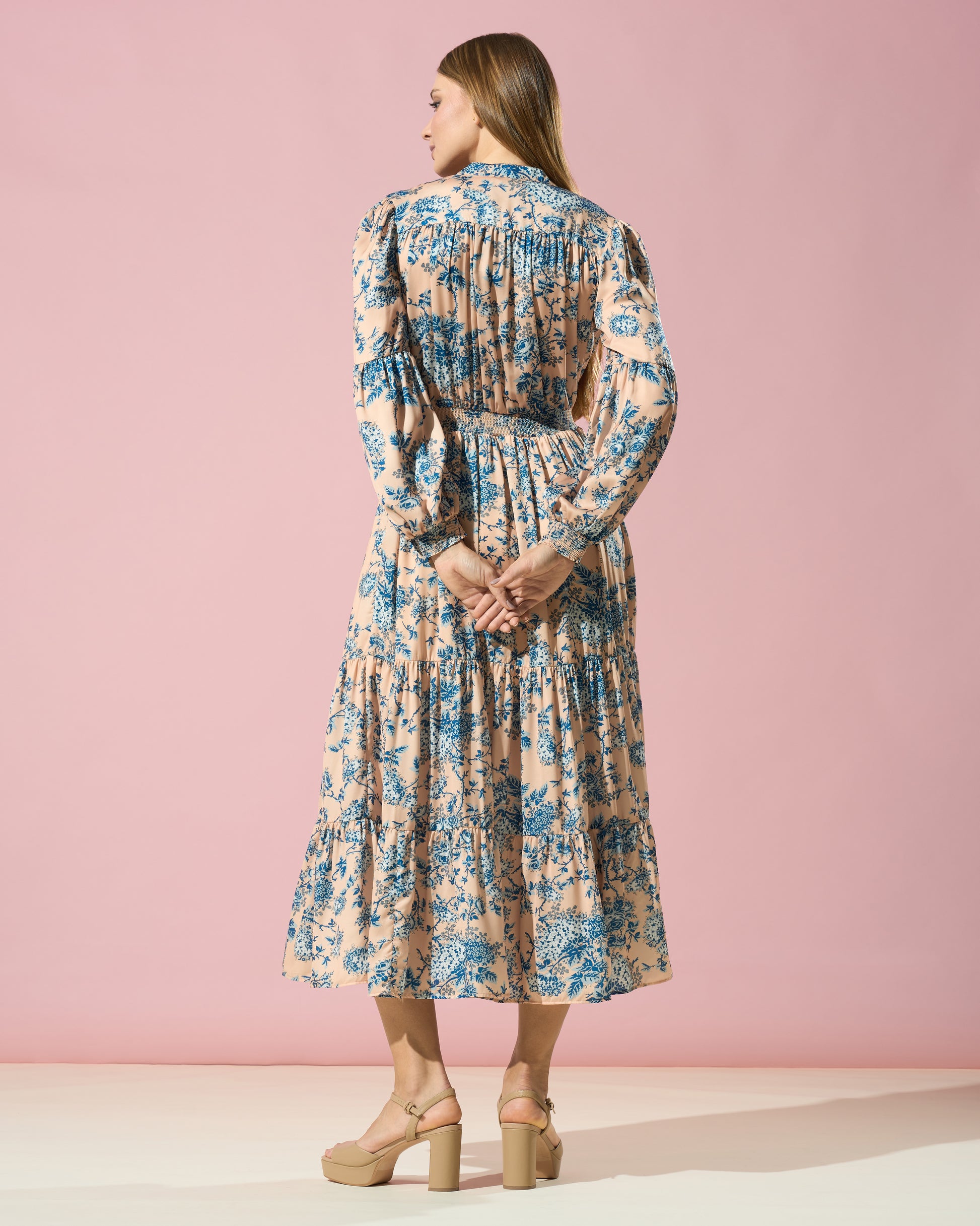 This midi dress reflects a love for vintage inspirations. Its romantic floral print and fluid silhouette make it a perfect choice for the summer season, blending nostalgic charm with modern elegance.