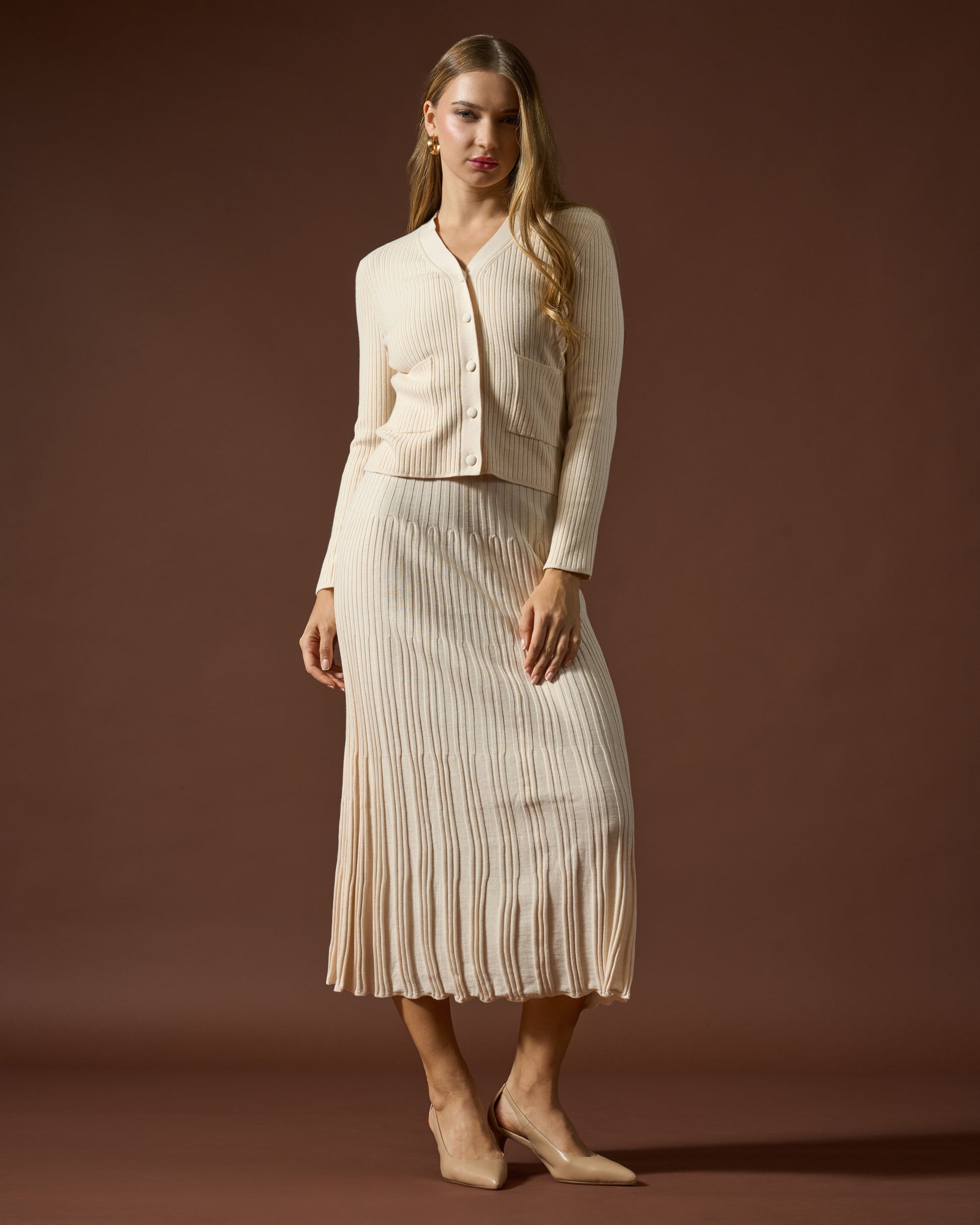 Effortless elegance in every pleat. Pair it with a matching knit top for a polished and feminine look.