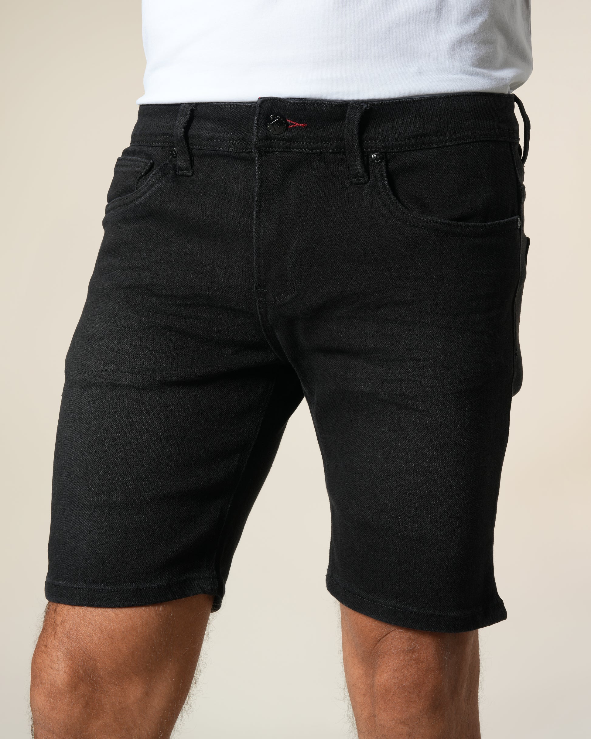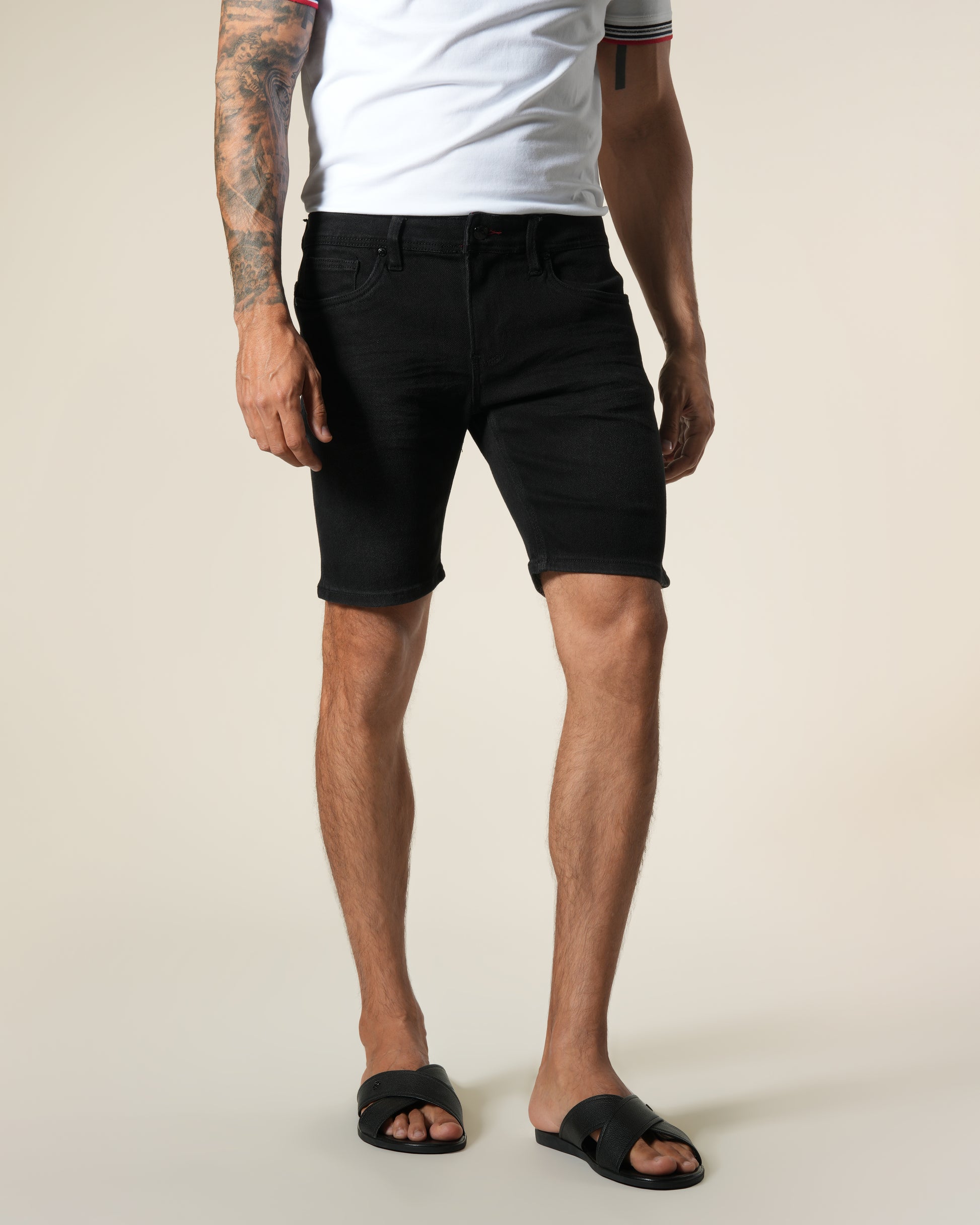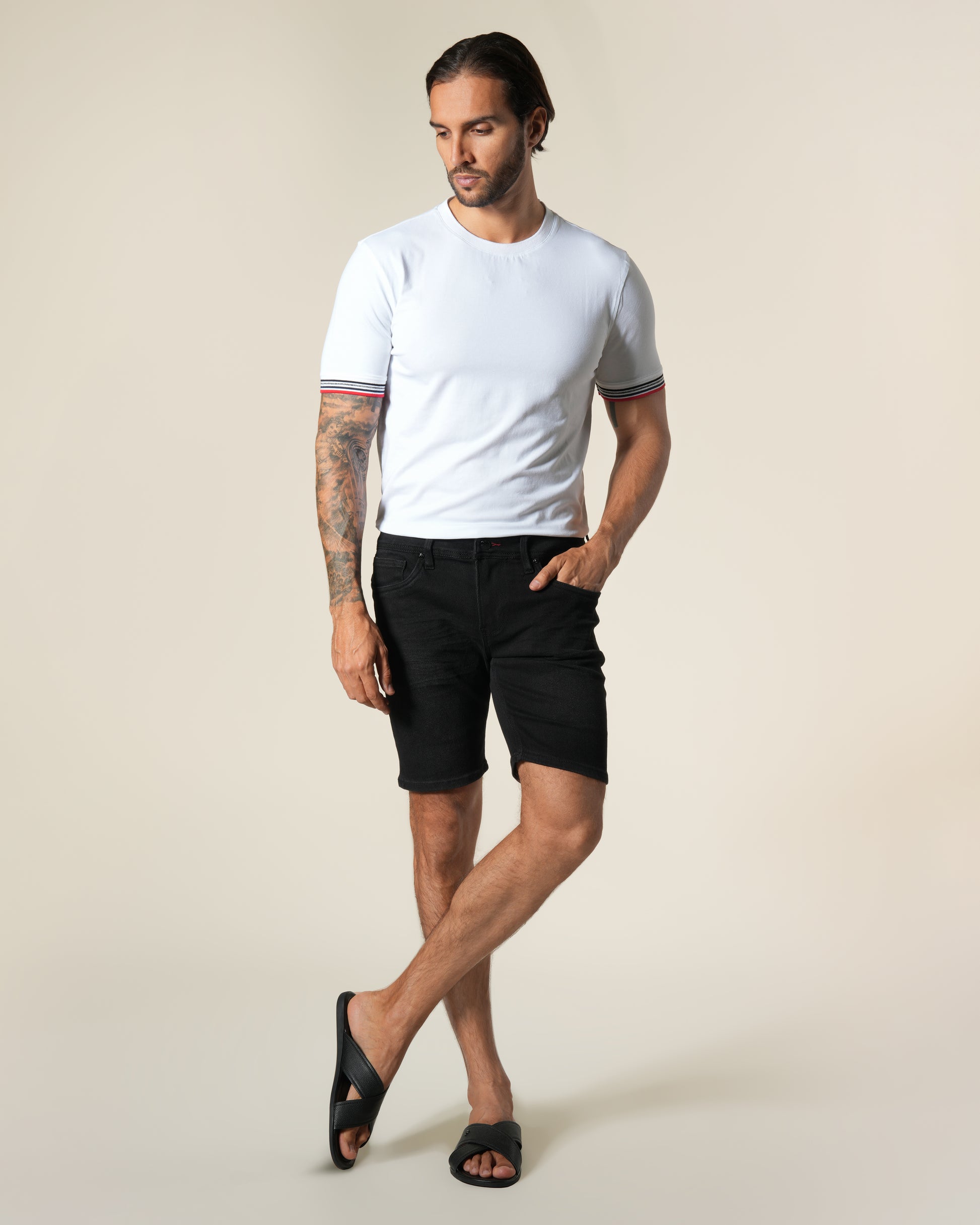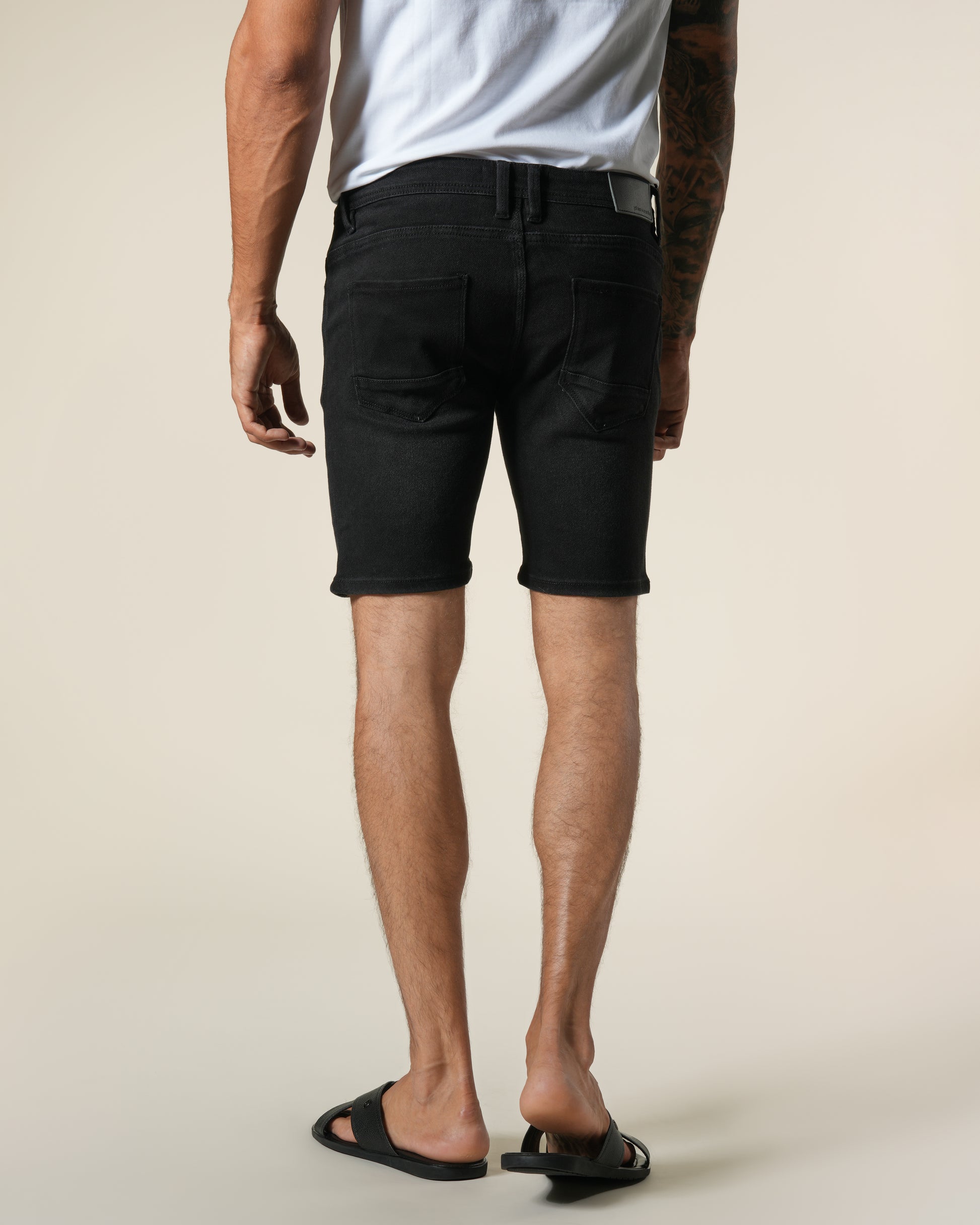 These denim Bermuda shorts embody a distinctively retro flair. Made from black cotton denim with a slight stretch, the style has a straight-cut silhouette and a subtle leather patch detail on the back.