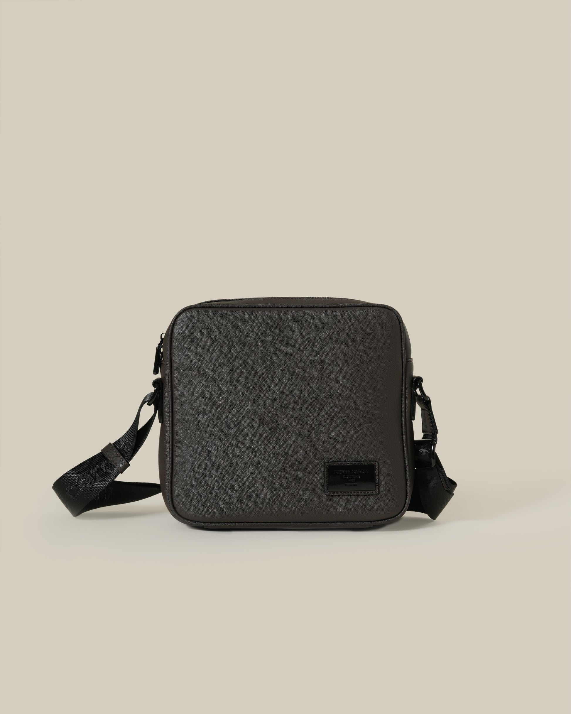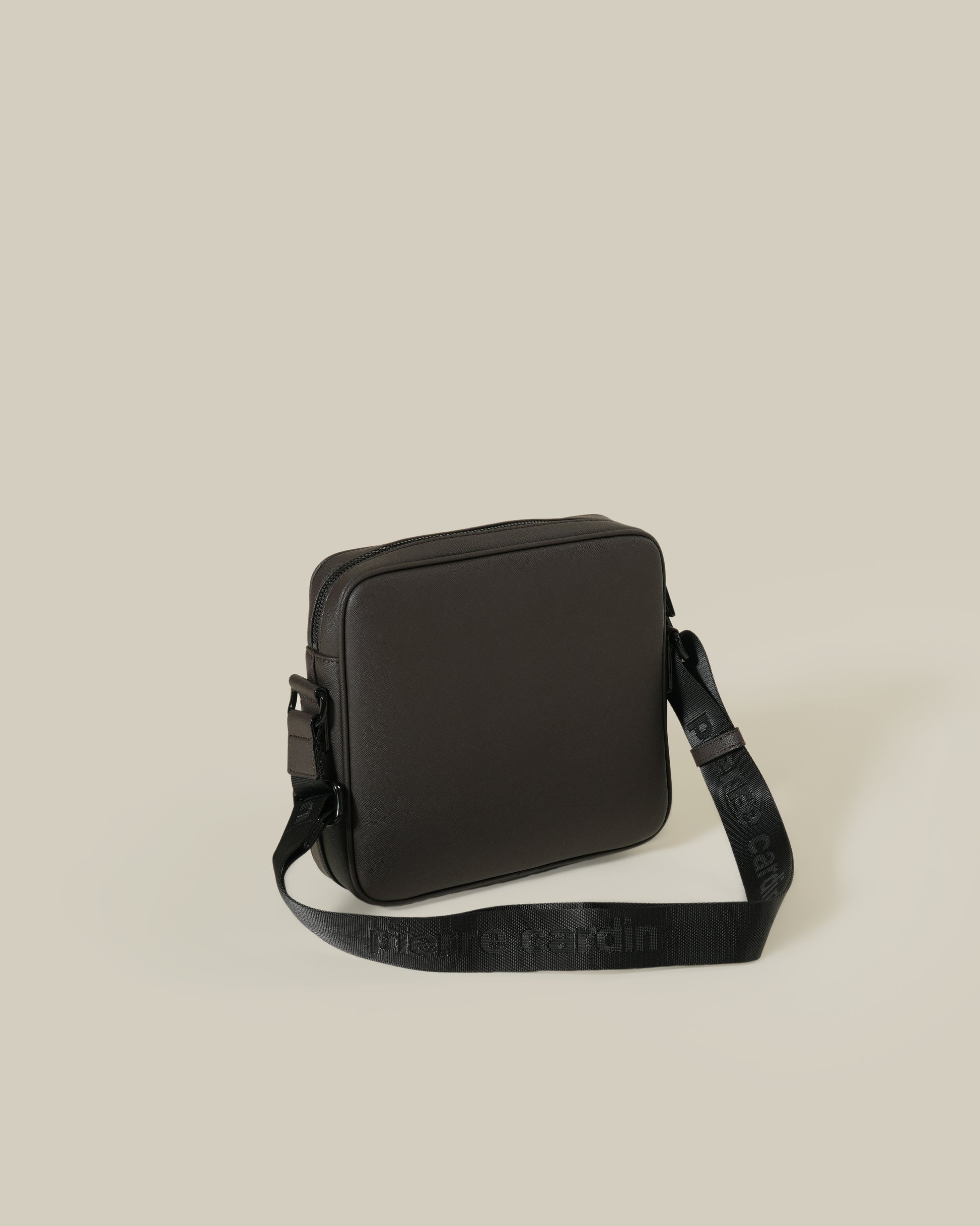 Weekends just got a whole lot easier with this roomy crossbody in brown. Top zip access, adjustable woven strap, and detailed with metal plate.